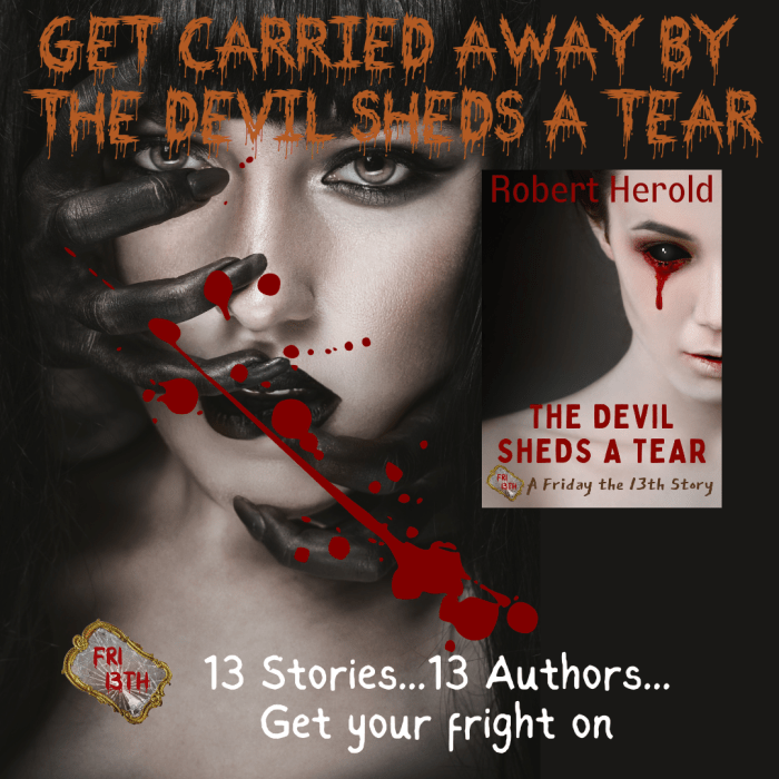 Happy 2023! It’s almost release day for a series of horror short stories revolving around Friday the 13th. I will be sharing each story on my post, one per day. Today, I’m pleased to welcome Robert Herold with his story, The Devil Sheds a Tear…